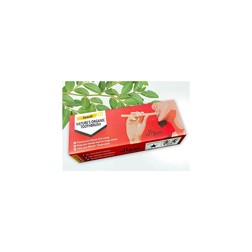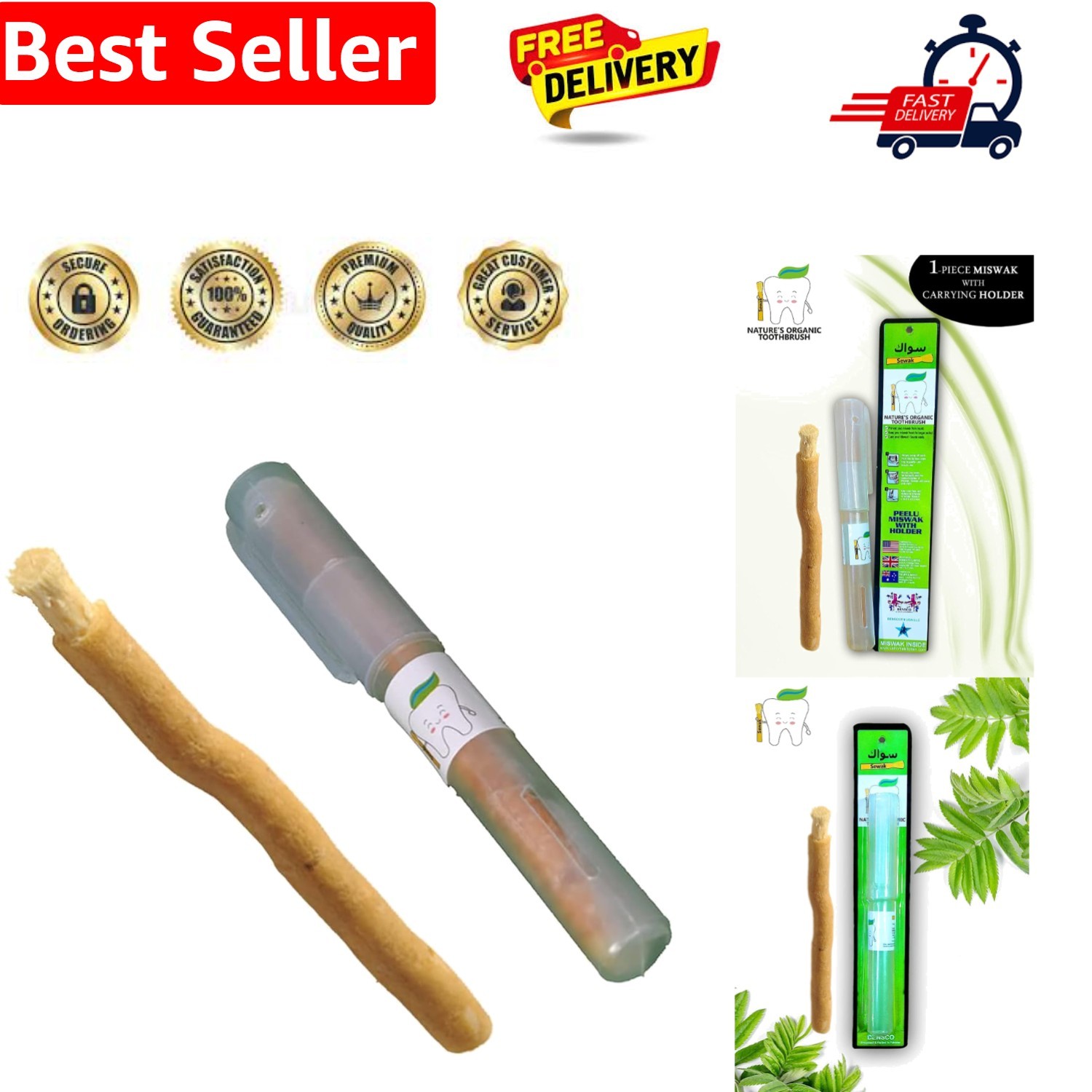 Miswak Stick Natural Chewable Toothbrush Sticks Miswaak Siwak Organic Wooden Tooth Brush Oral Natural Sewak Teeth Whitener with Holder ( 01 Unit )