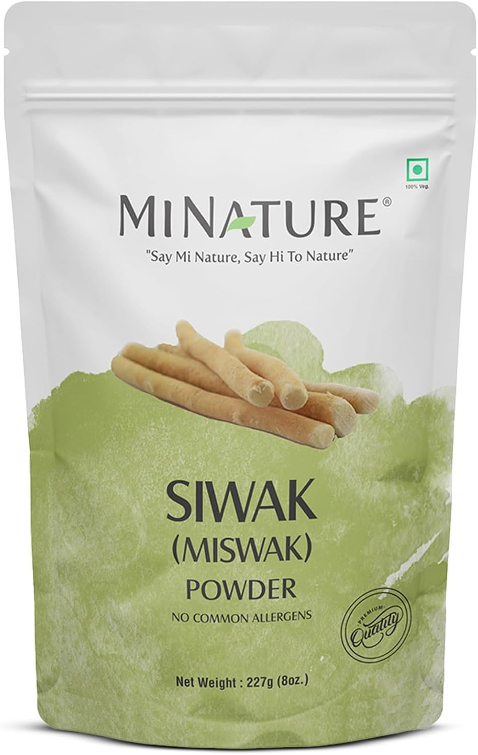 Miswak ( Siwak ) Powder by mi Nature | salvarado persica| 227g( 8 oz) ( 0.5 lb) | 100% Only Miswak ( siwak) Powder | Dental Care | Natural Toothpaste