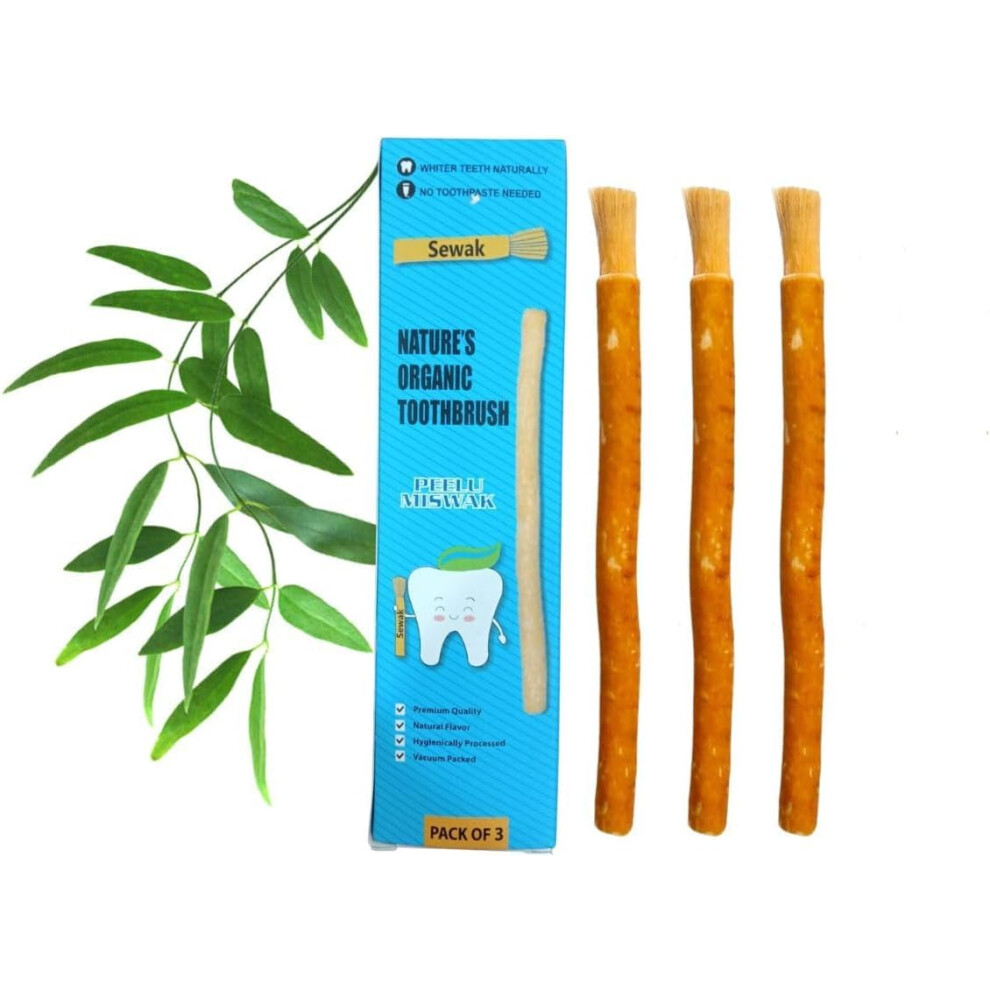 SEWAK Miswak Siwak Sticks for Teeth Natural Herbal Vacuum Sealed Arak Peelu Natural Toothbrush (3 Tooth Stick)