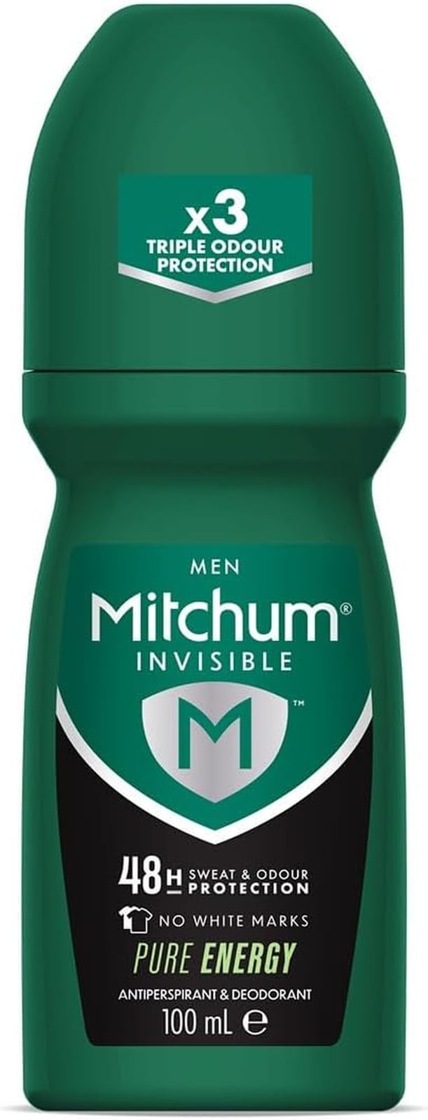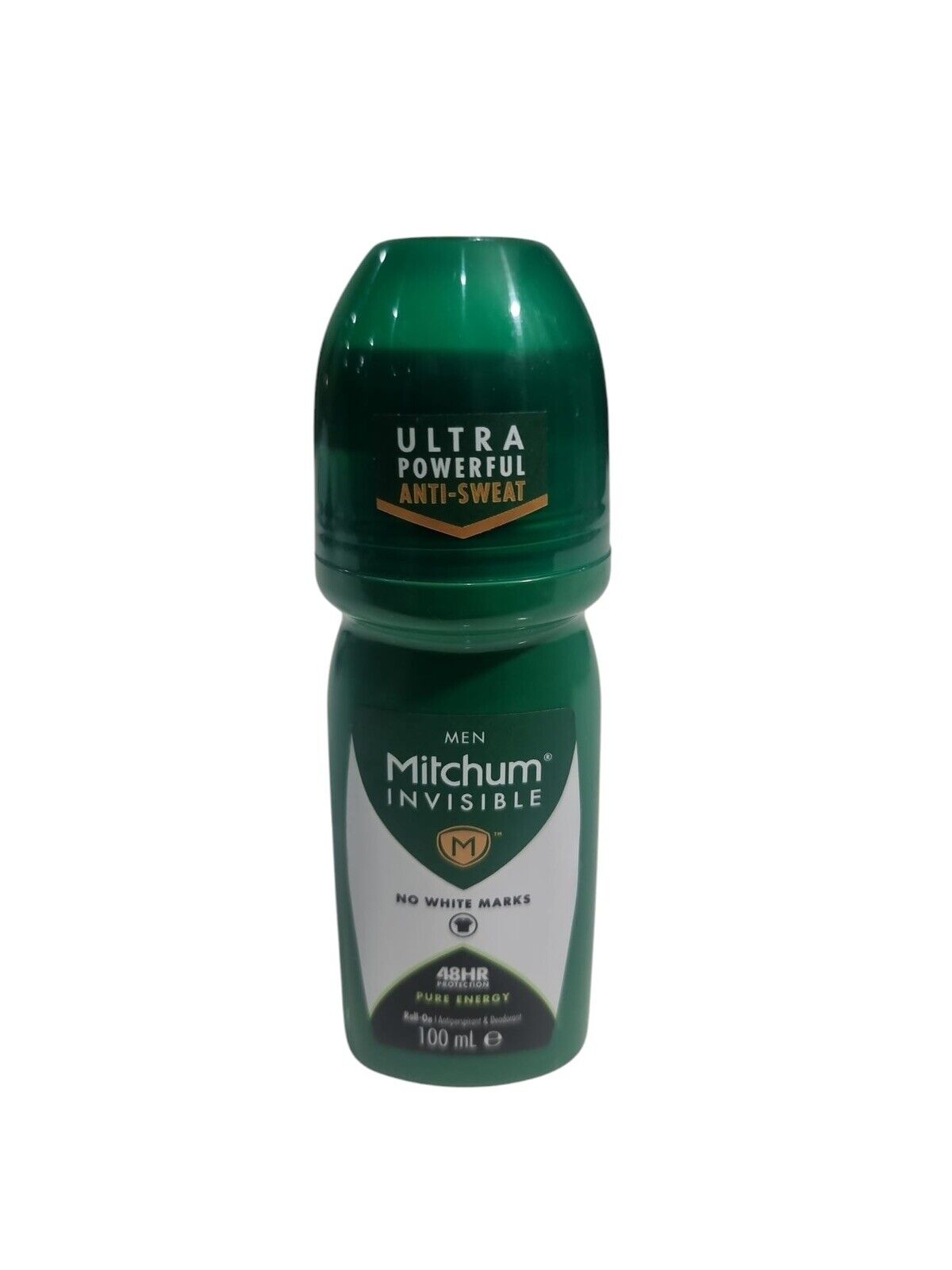 Mitchum Invisible Men 48HR Protection Roll On Anti-Perspirant & Deodorant, No White Marks, Alcohol Free, Pure Energy 100 ml 7246640000 - Packaging May Vary