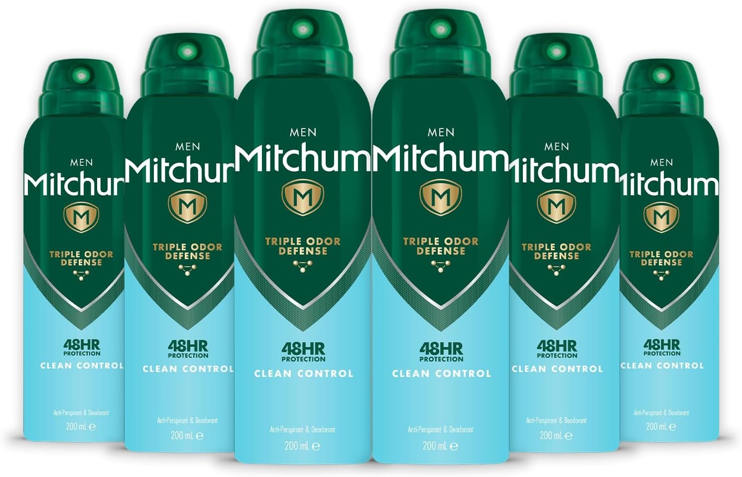 Mitchum Men Triple Odor Defense 48HR Protection Deodorant Spray and Antiperspirant (200ml) Clean Control, Dermatologist Tested (Pack of 6)