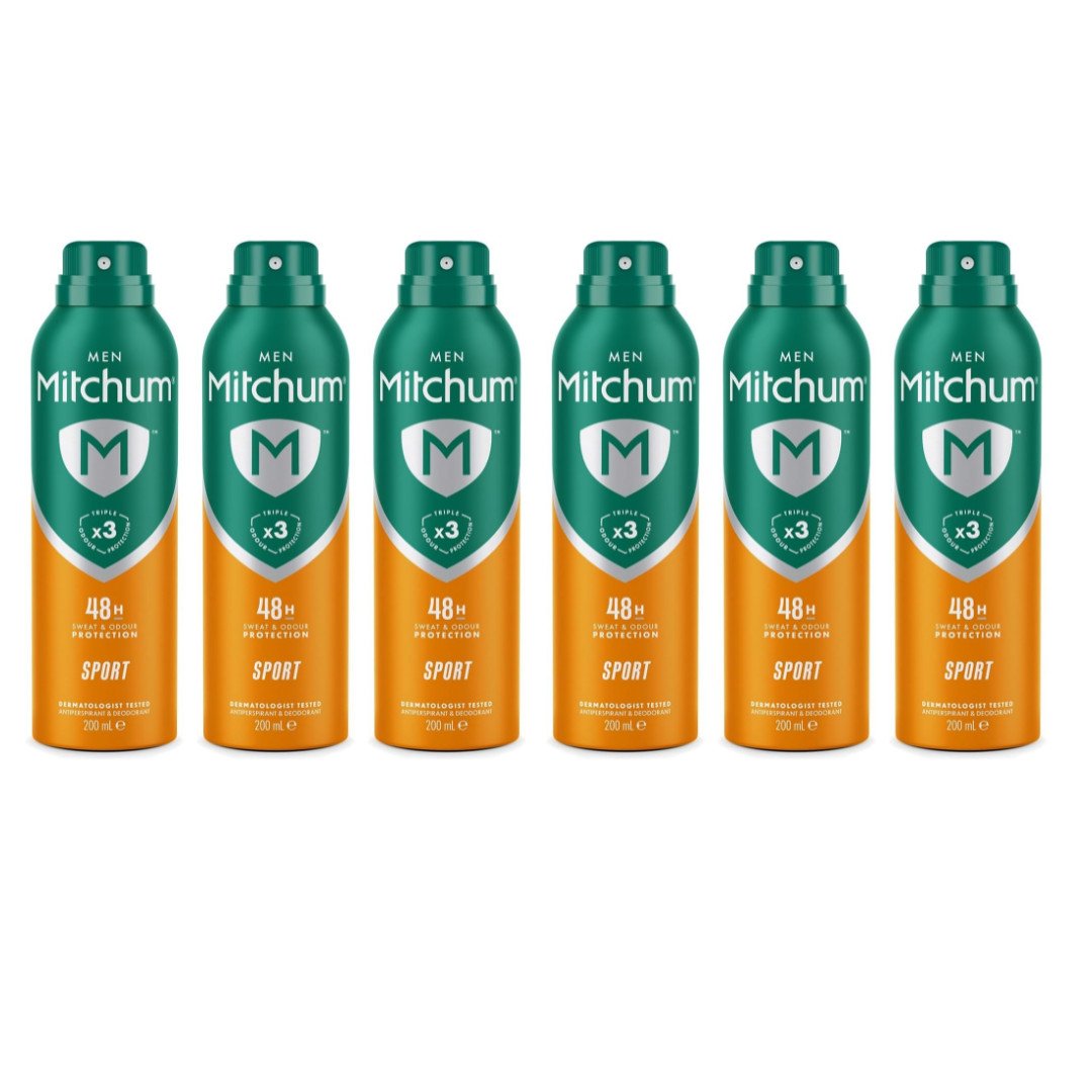 Mitchum Sport Mens Antiperspirant 6 x 150ml Deodorant 48H Protection NEW