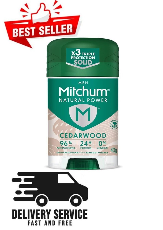 Mitchum Men Natural Deodorant Stick Aluminium and Cruelty-Free Vegan Cedarwood
