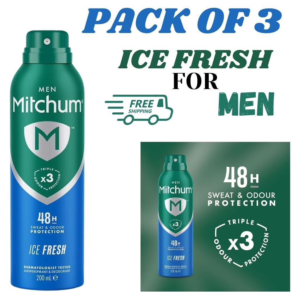 3 x 150ml Mitchum Mens Antiperspirant Deodorant Ice Fresh 48H Protection NEW