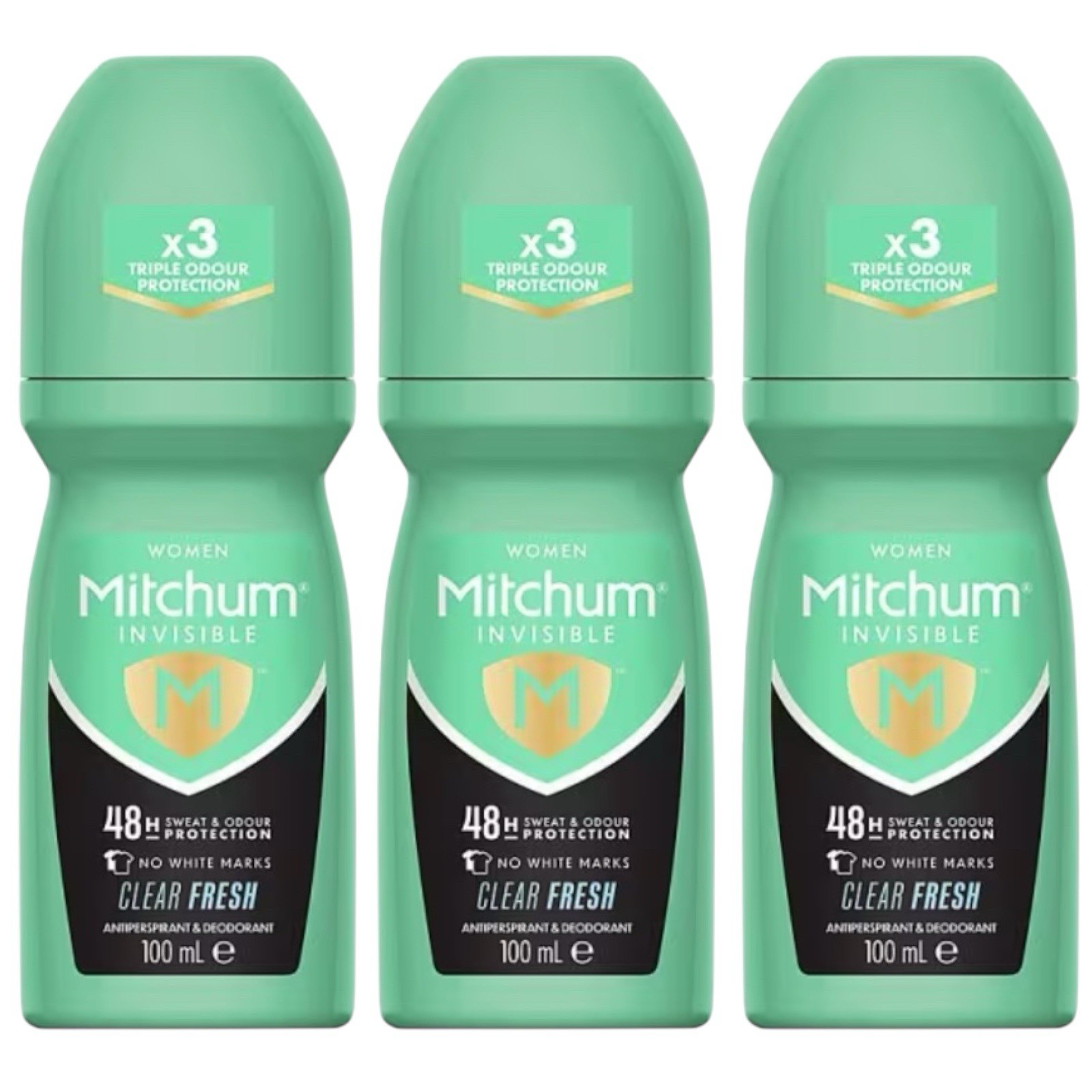 X3 Mitchum Women 48HR Roll-On Deodorant & Antiperspirant 100ml Fresh & Long-Last