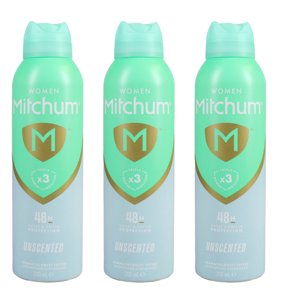 3 x 200ml Mitchum Unscented Women Deodorant Antiperspirant 48hr Spray