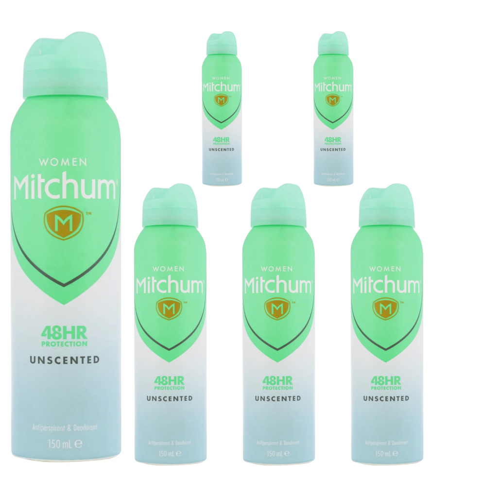 6 x 150ml Mitchum Women Unscented Antiperspirant Deodorant Spray