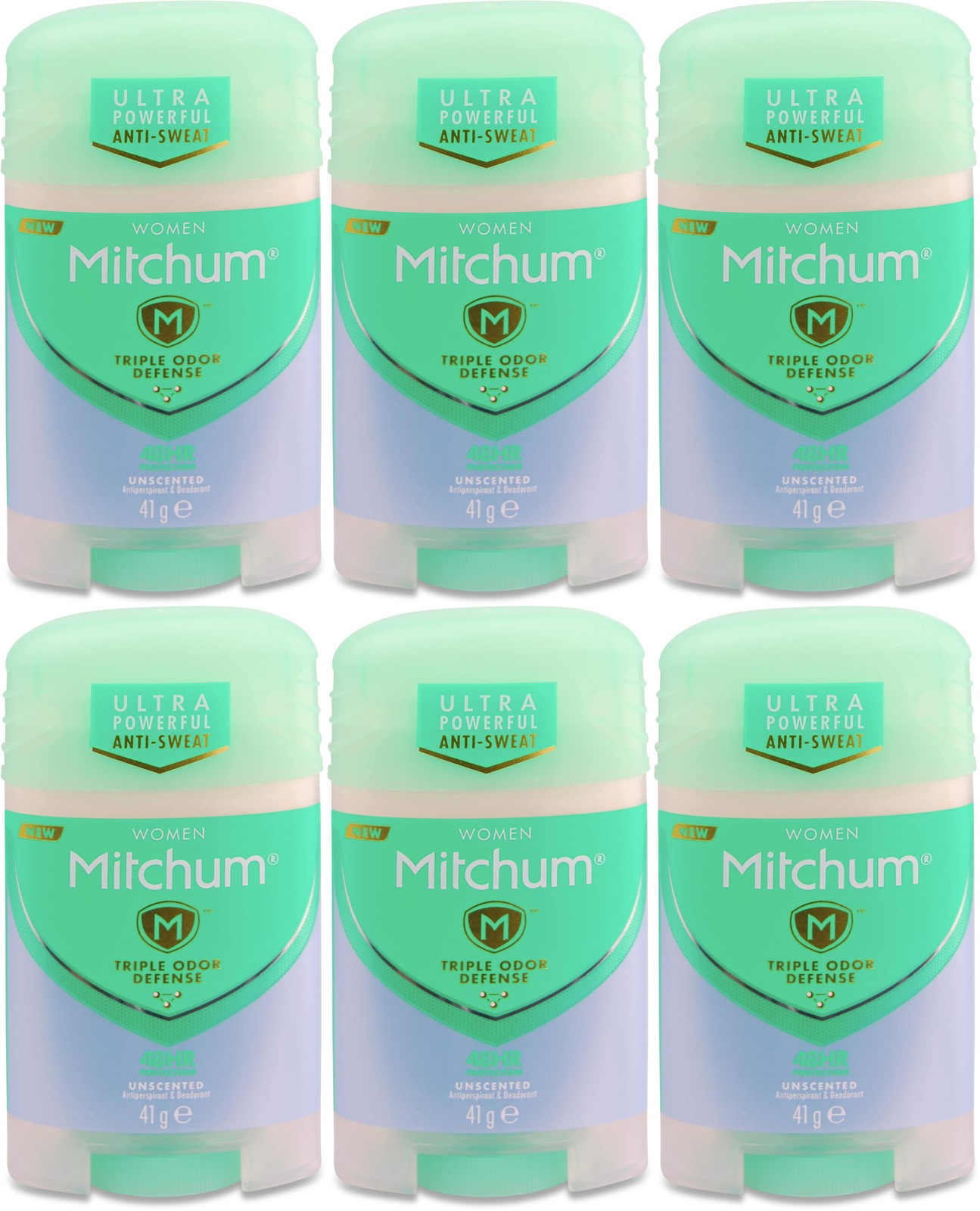 Mitchum Women Triple Odor Defense 48 hr Protection Stick Deodorant and Anti-Perspirant, Unscented, 41 g (Pack of 6)