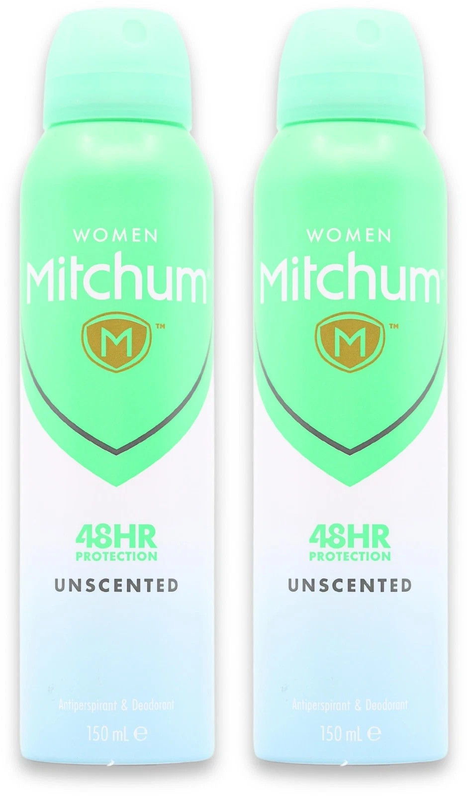2 X MITCHUM Women Antiperspirant & Deodorant UNSCENTED 150ml