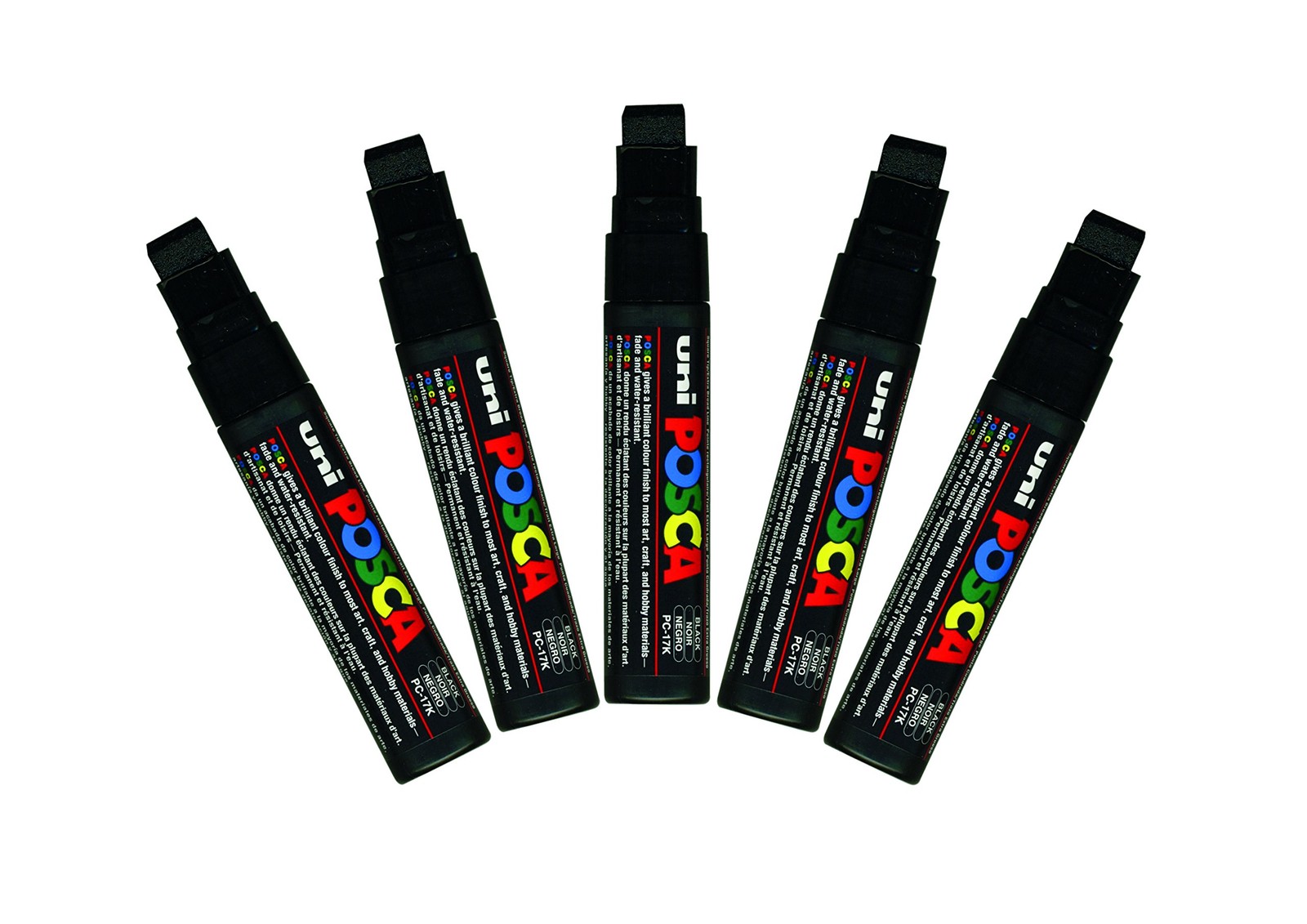 uni-ball Posca PC-17K Extra Broad Chisel Tip Marker - Black, Pack of 5