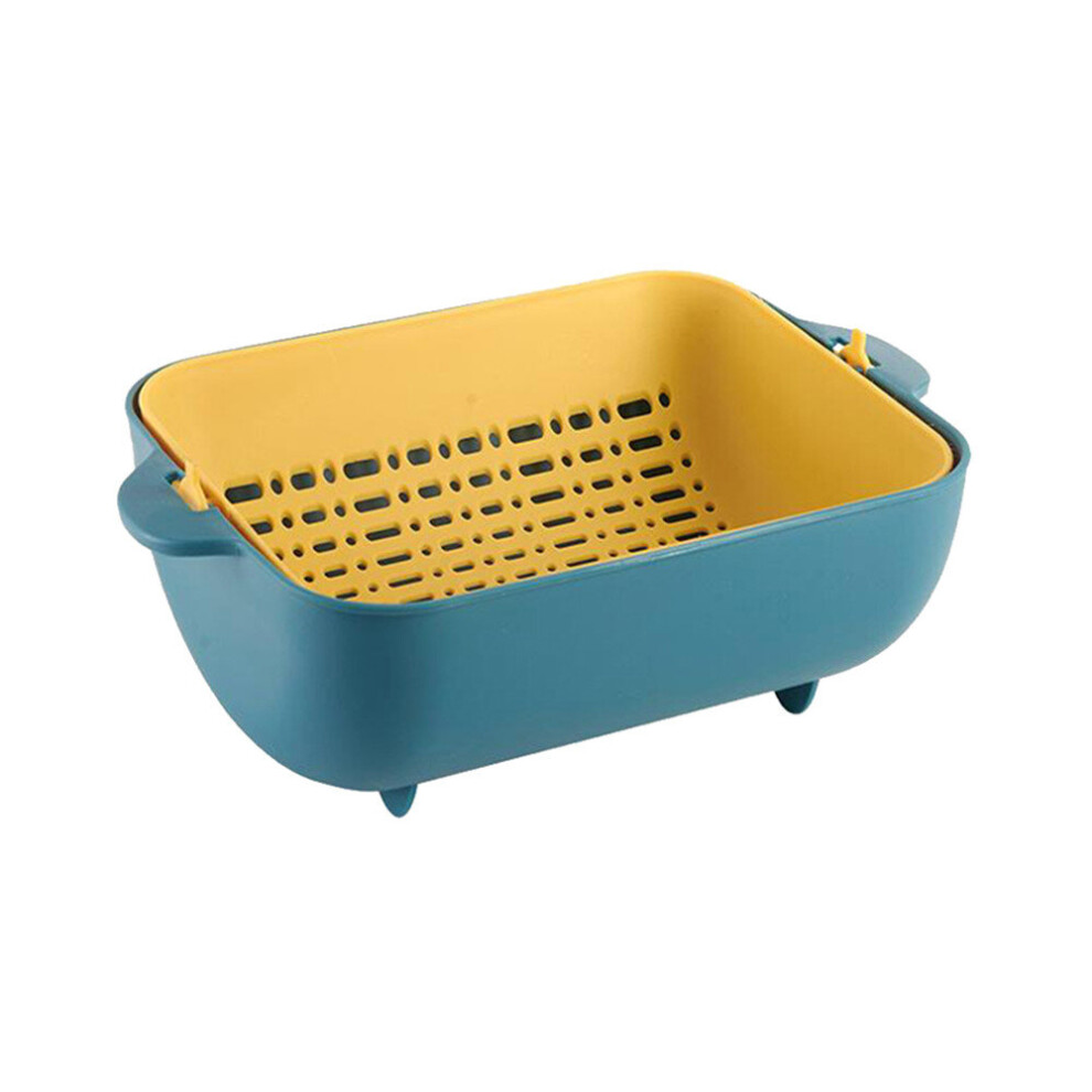 2Pcs 2-in-1 Kitchen Colander/Filter Bowl Double-layer Rotatable Drain Basin and Basket Clean Wash Mix Fruit for Vegetable Washing