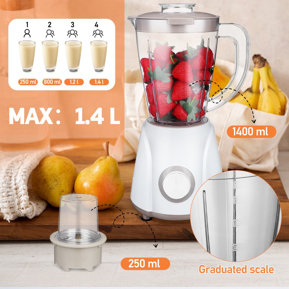 1.4L +250mL Food Blender Juicer Mixer Ice Crusher Nuts Grinder Smoothie Maker UK