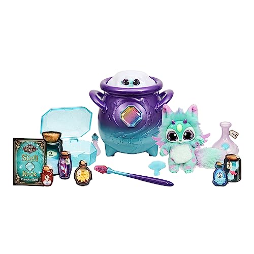 Magic Mixies - Magical Real Misting Purple Cauldron with Interactive 8 Inch Blue and Plush Toy, Follow The Spell Book Add the Magic Ingredients, Who Will You Magically Create?