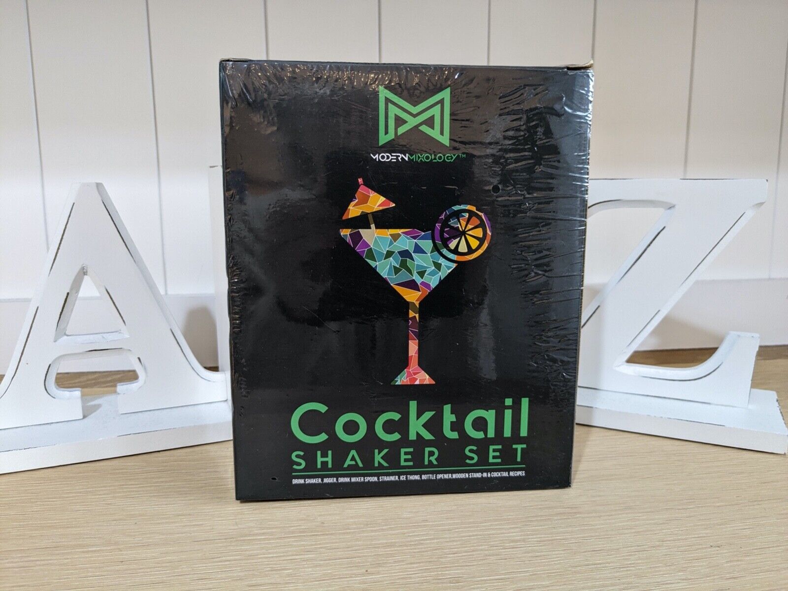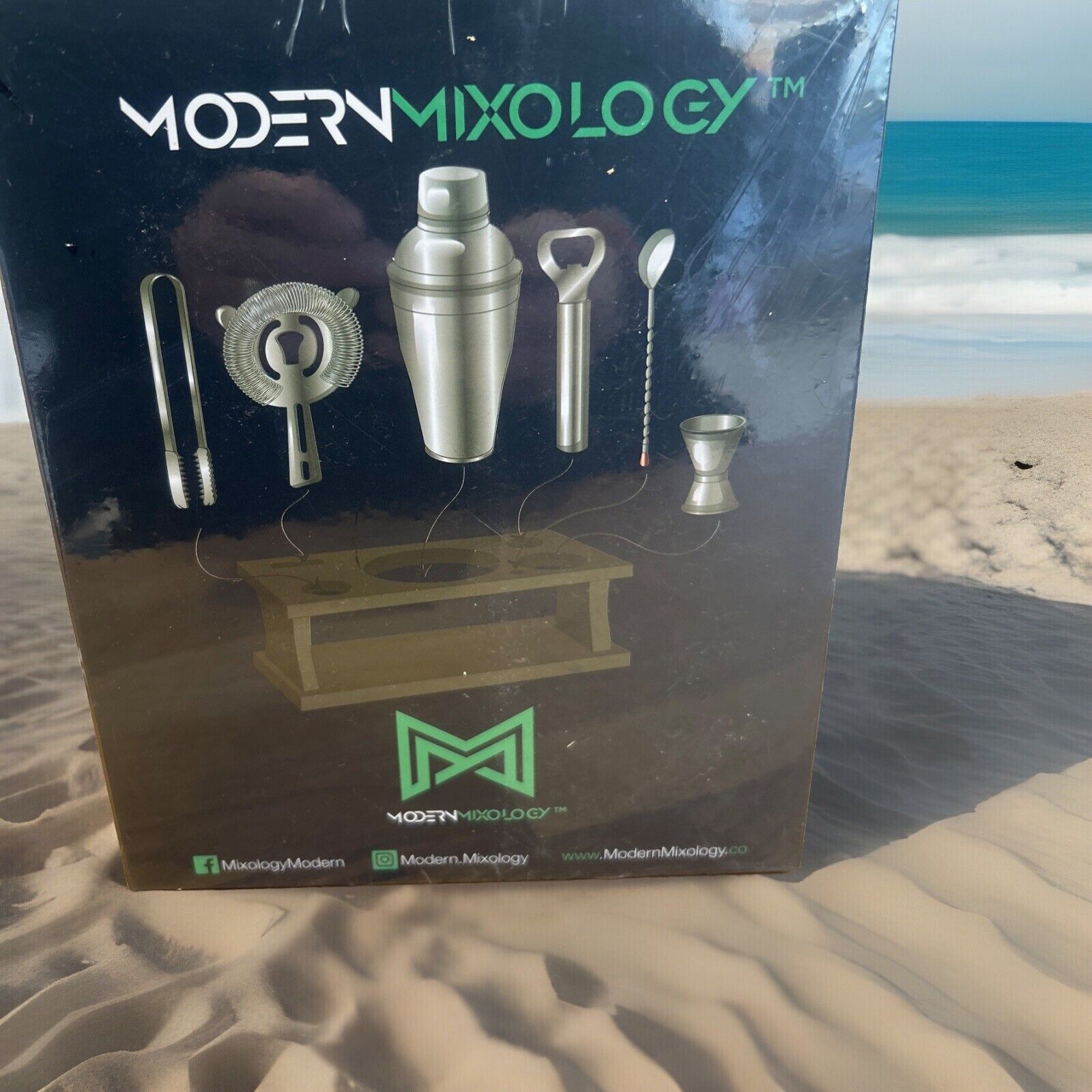 Modern Mixology Cocktail Shaker Set 7 Piece with Wooden Stand NEW