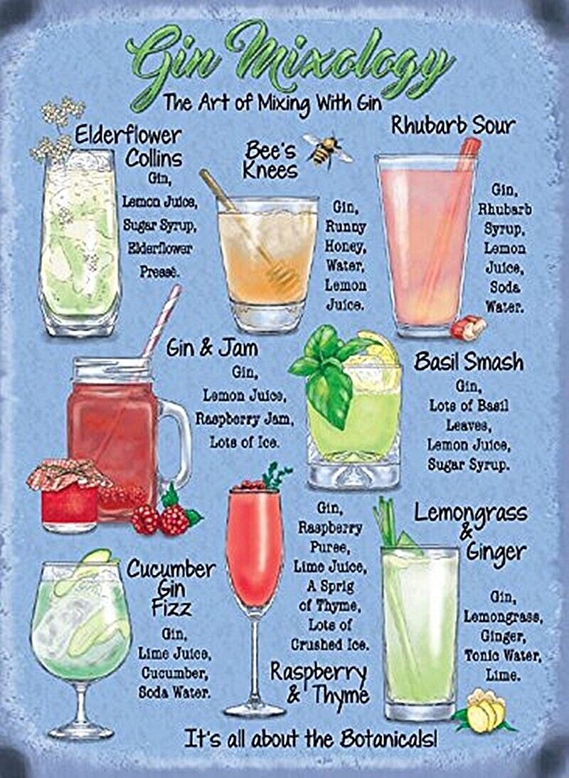 Gin Mixology cocktail recipes small steel sign 200mm x 150mm