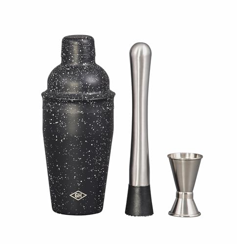 Gentlemen's Hardware Cocktail Shaker Muddler and Jigger Bartender's Mixology Kit, 3-Piece, 18/8 Stainless Steel, Black