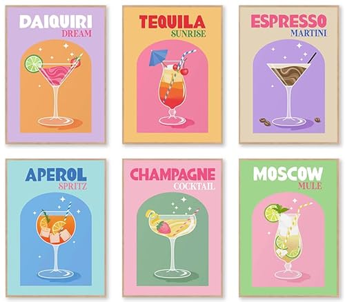 KBKBART Cocktail Mixology Wall Art Print, Cute Colorful Liquor Drink Alcohol Wall Art for Home Decor, Cocktail Poster Aesthetic for Girls Party Apartment Dorm Kitchen Bar Decoration, Funky Trendy