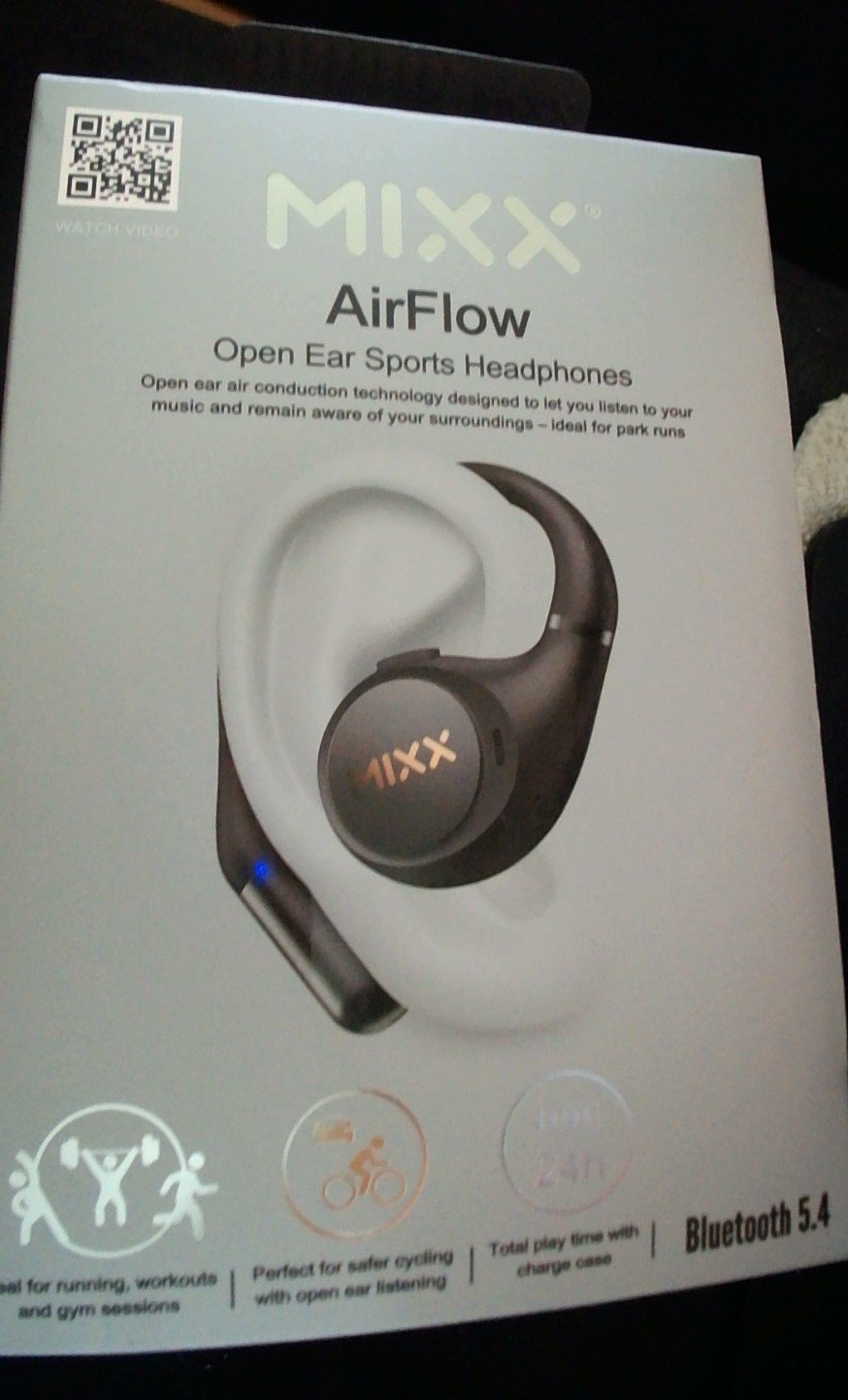 MIXX AirFlow Open Ear Sports Headphones. 24hrs. Bluetooth. Hands Free Calls. New