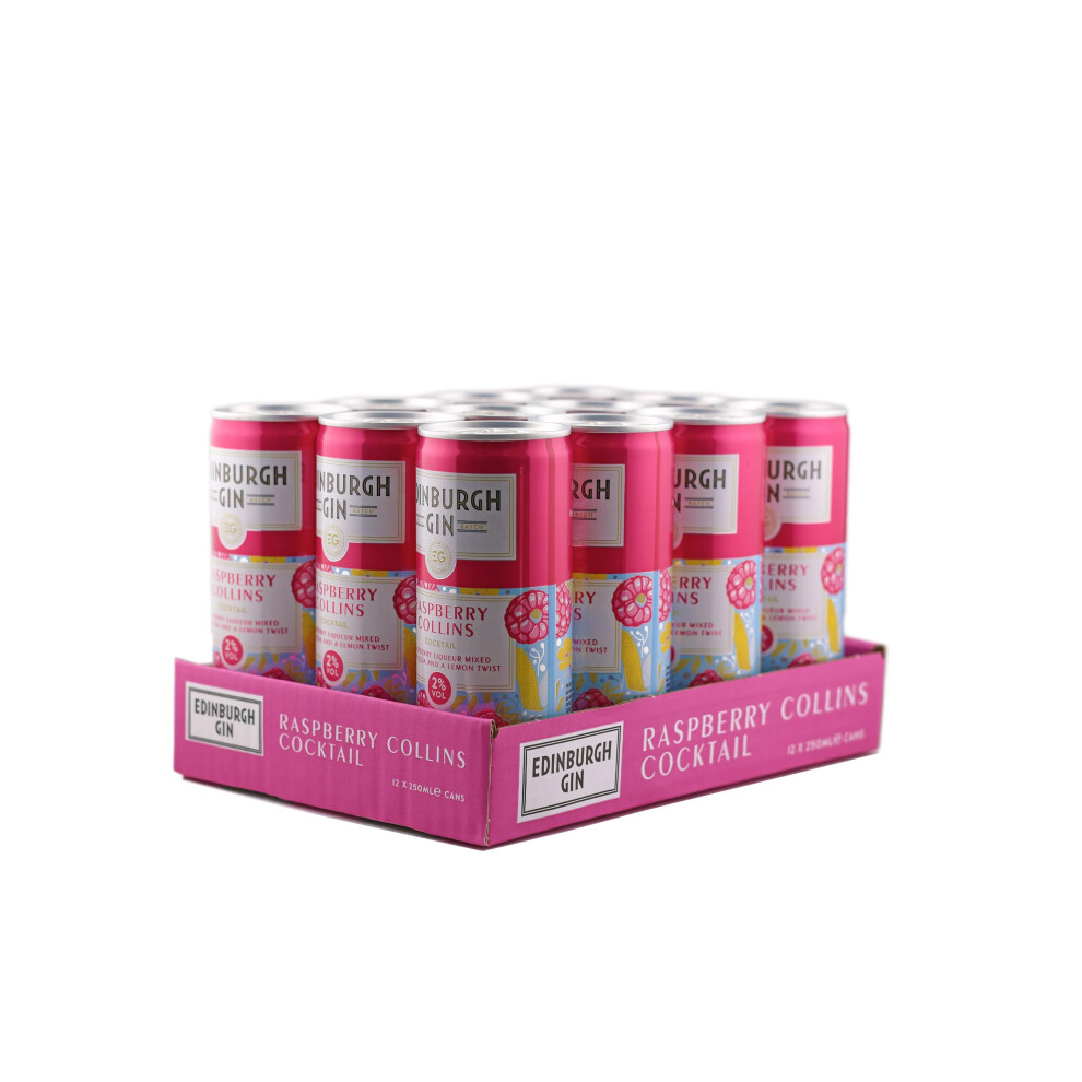 Edinburgh Gin Raspberry Collins Low Alcohol Ready To Drink Cocktail Can 2% ABV | 250ml | Pack of 12 | Raspberry Liqueur blended with Premium Soda and