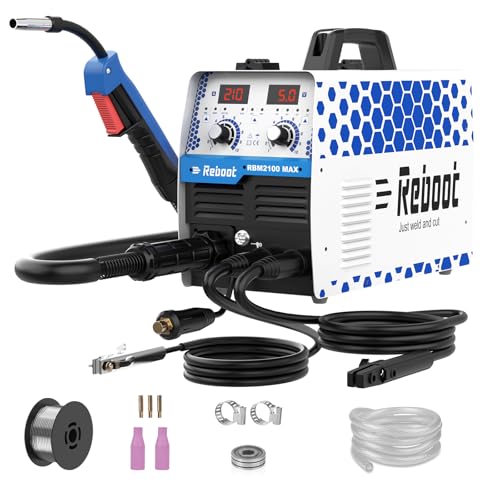 Reboot 210A 6-in-1 MIG Welder 230V Gas/Gasless Flux Core MIG/Stick MMA/Lift TIG/Spot Welding/Spool Gun, Aluminum Multi-Process Welder with Digital Display,RBM2100 MAX