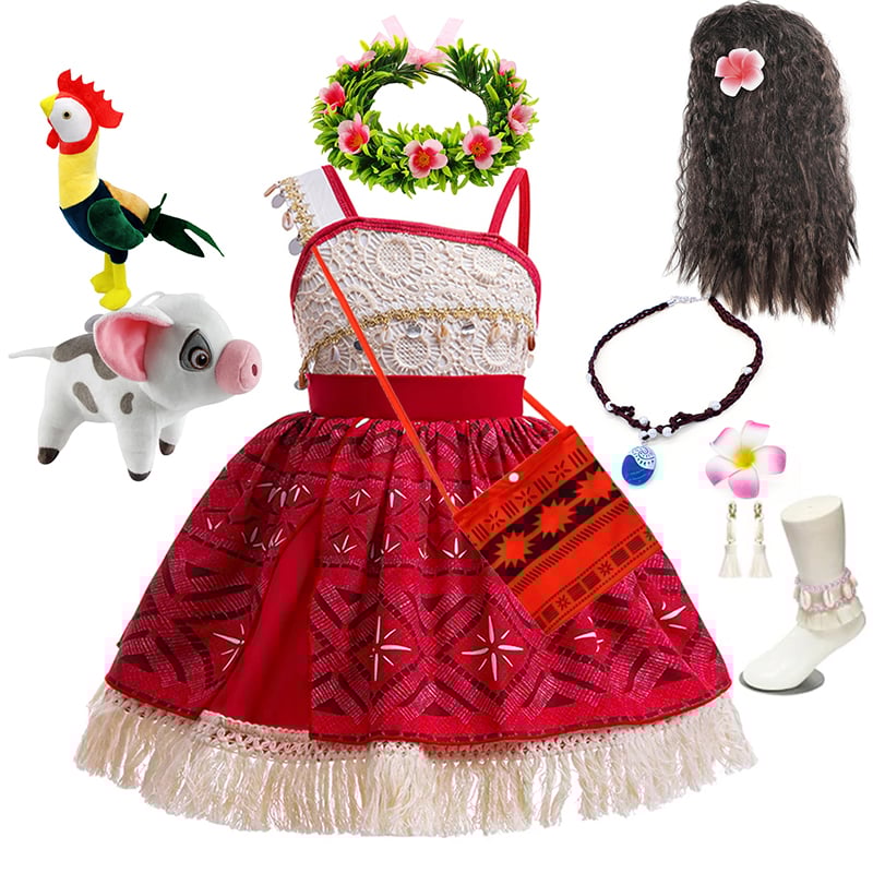 Moana Dress Kids Girls Children Cosplay Princess Birthday Carnival Party Costume with Necklace Flower Set Summer
