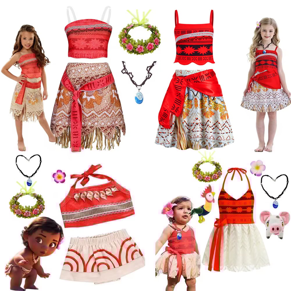 (120cm) Moana Princess Costume Fancy Dress Children Cosplay Hawaiian Set for Kids Adult