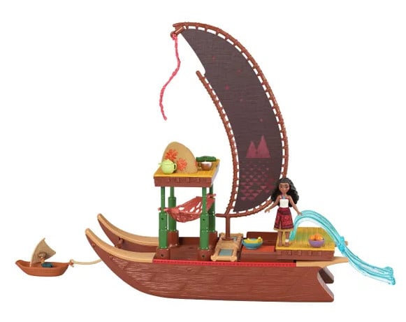 Mattel Disney Moana 2 Toys, Moana’s Adventure Canoe Playset with Floating Canoe, Moana Small Doll, 1 Character Friend, 6 Play Areas & 10 Accessories, JBT54