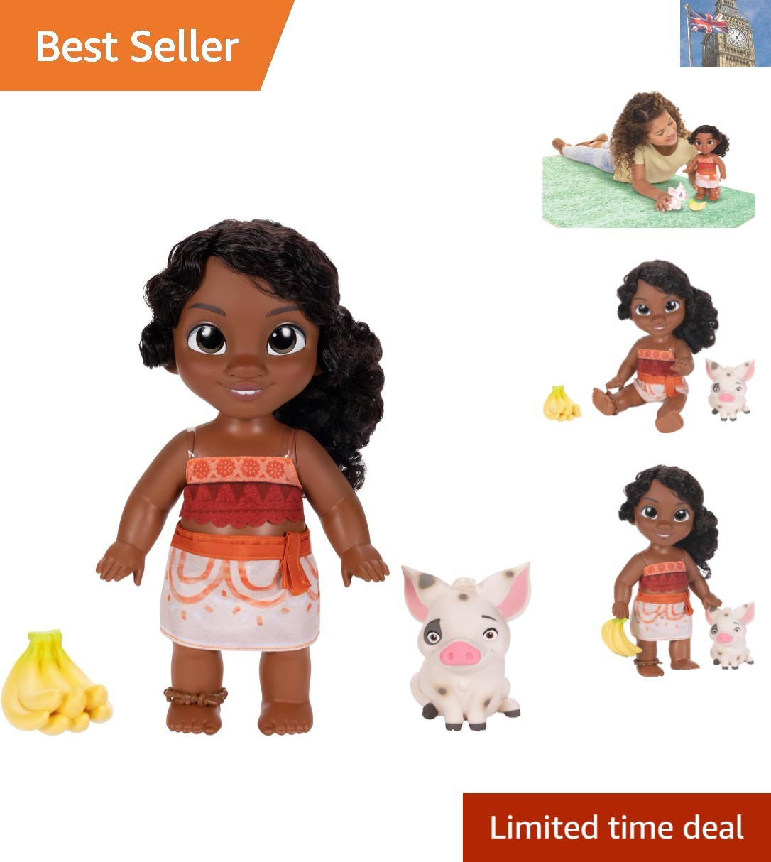 Disney Princess Moana Baby Doll Deluxe with Tiara Carrier Plush Frie