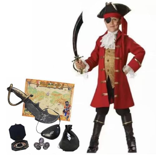 Belle & Moana Boys Pirate Fancy Dress up Costume Outfit Set with Accessories for Kids Boys Halloween Cosplay Birthday Party Age 9-10 Years