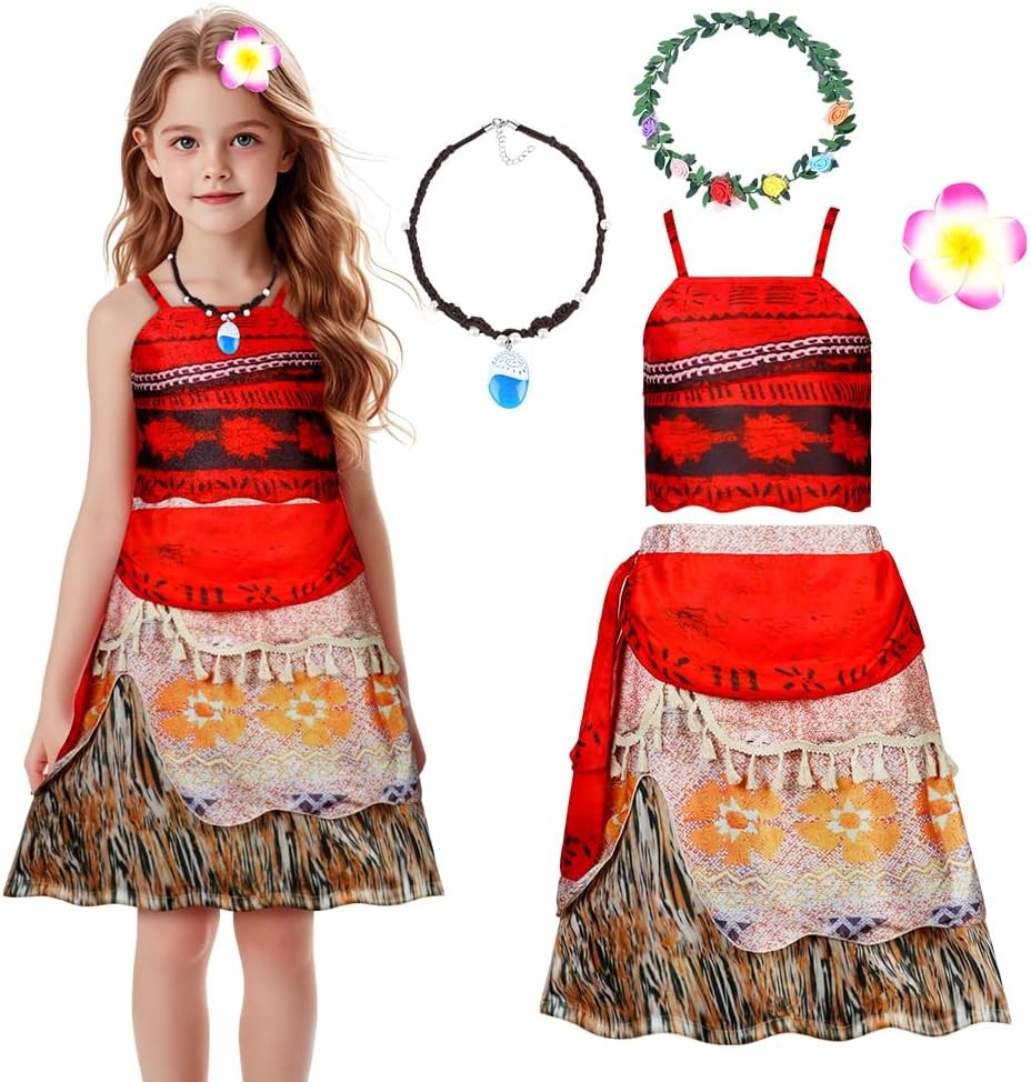 Esvaiy Moana Girls Fancy Dress Costume Princess Costume Halloween Christmas Birthday Party Costume (Red, 3-4 Years)
