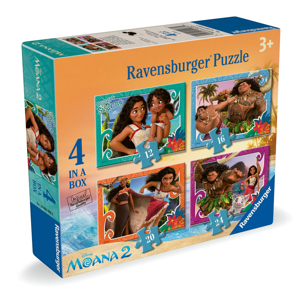 Ravensburger Disney Moana 2 Toys - Jigsaw Puzzles for Kids Age 3 Years Up - 4 in a Box (12, 16, 20, 24 Pieces)