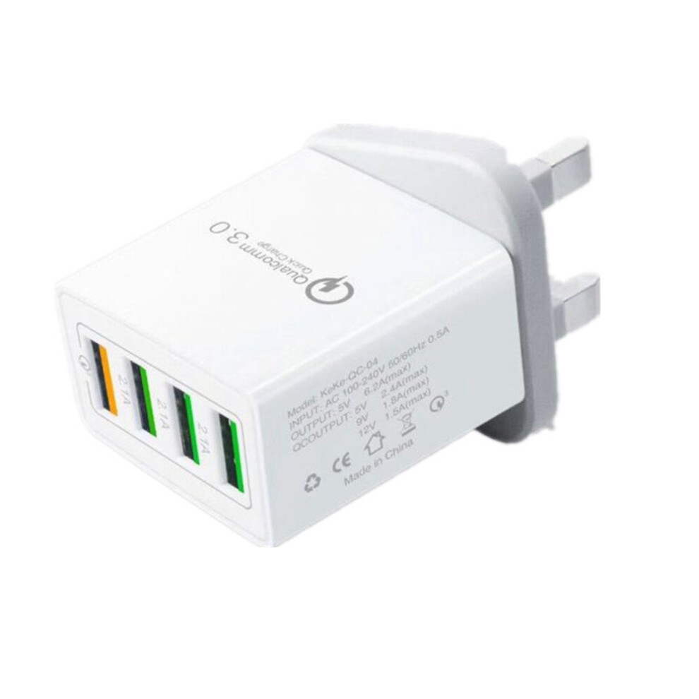 2Pcs Universal 4USB Travel Mobile Phone Charger Adapter for iPhone Samsung 5V 5.1A Smart Charging Head Smart Phone USB Fast charger UK plug white