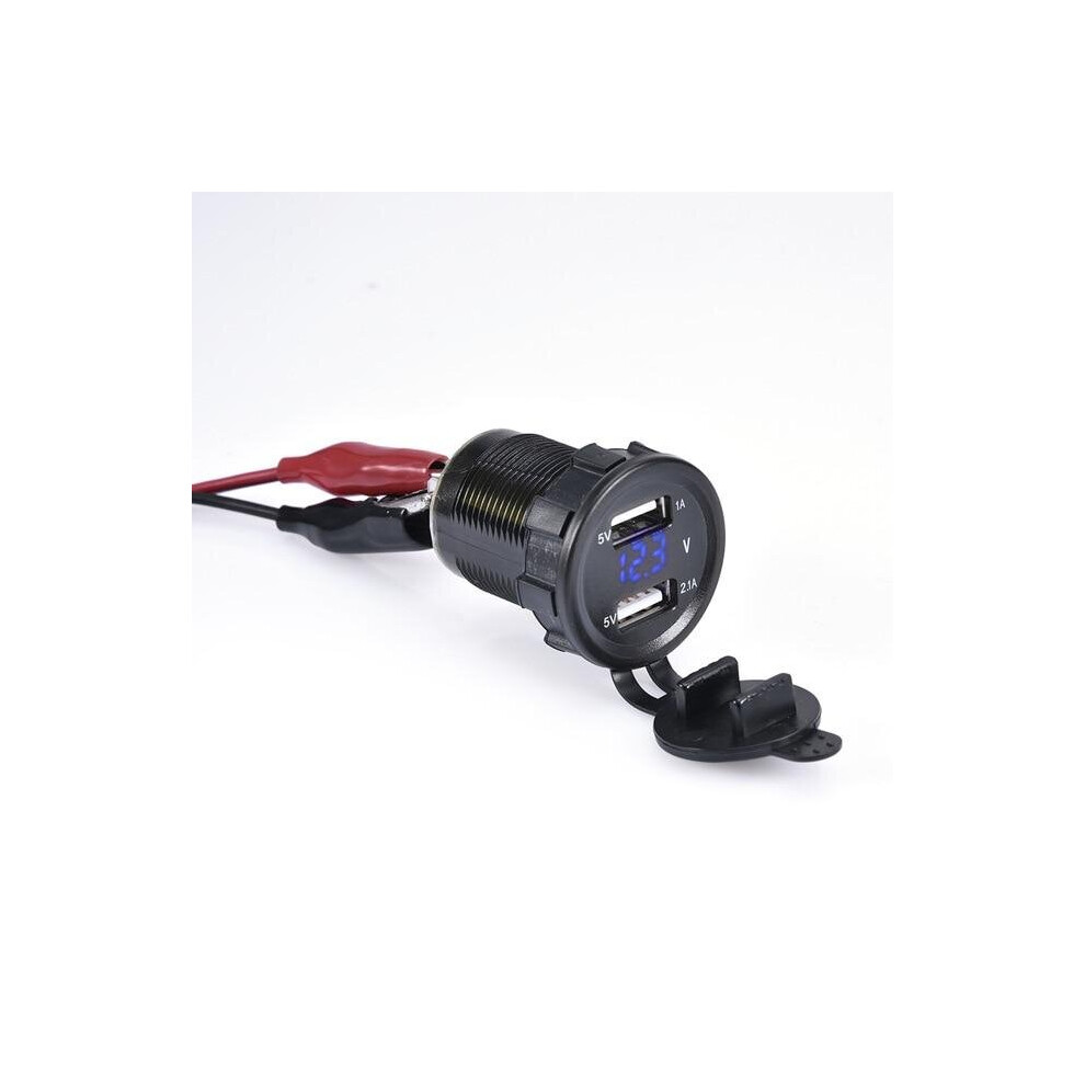 (Blue) 12V/24V Dual Port Car USB Charger Power Outlet For Ipad Iphone Car Boat Mobile Phones Led Voltage Meter For Car Motorcycle