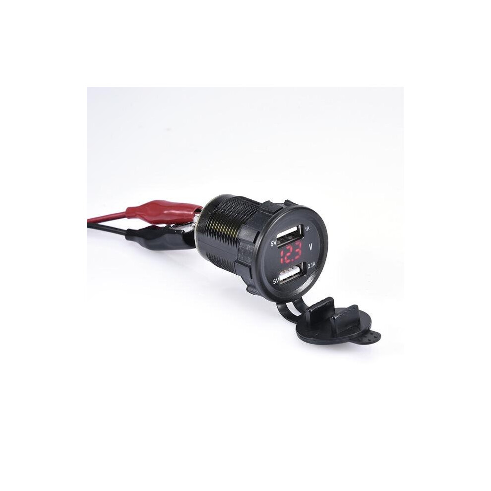 (Red) 12V/24V Dual Port Car USB Charger Power Outlet For Ipad Iphone Car Boat Mobile Phones Led Voltage Meter For Car Motorcycle