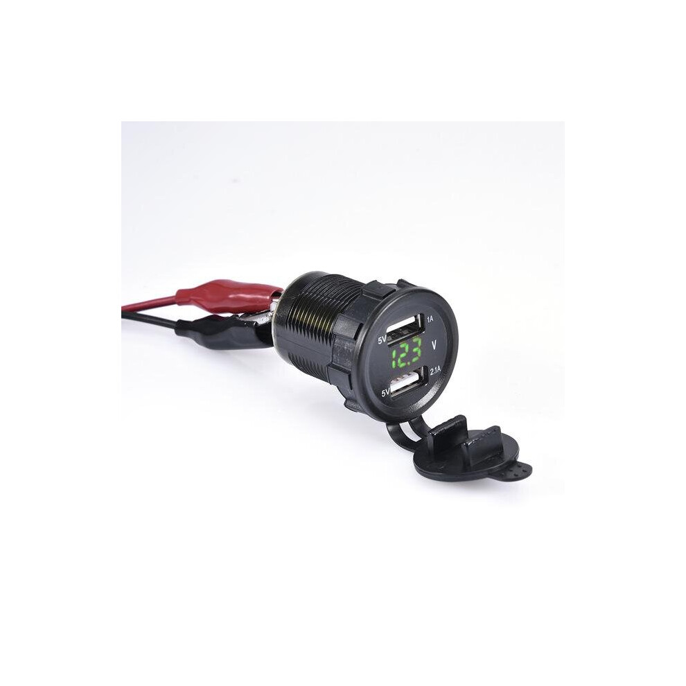(Green) 12V/24V Dual Port Car USB Charger Power Outlet For Ipad Iphone Car Boat Mobile Phones Led Voltage Meter For Car Motorcycle