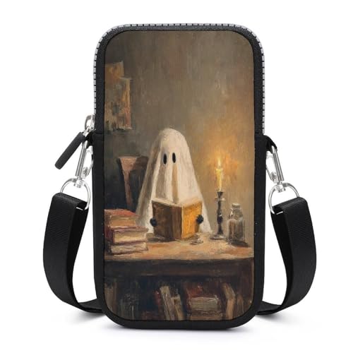 Vintage Ghost Reading Old Book Under Candlelight Crossbody Mobile Phone Bag Smartphone Bag With Adjustable Strap