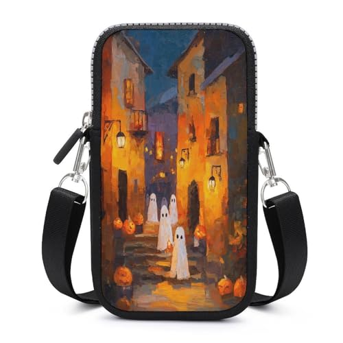 Halloween Night Cute Ghosts Old Town Street Crossbody Mobile Phone Bag Smartphone Bag With Adjustable Strap
