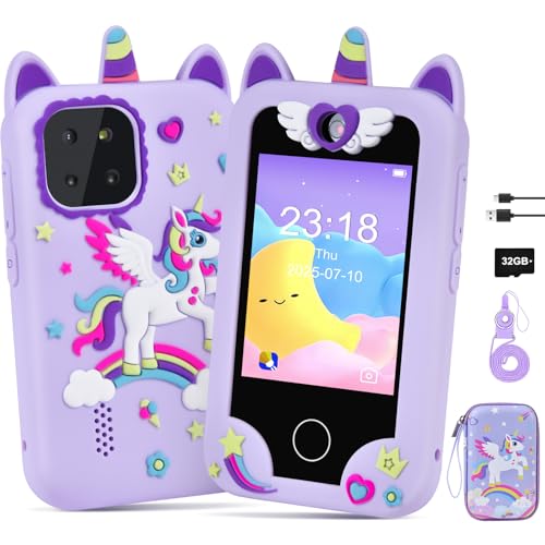 Muiefe Kids Phone for Girls, 2.8 Inch Touchscreen Kids Smart Phone with Dual Camera, 32G Card, Unicorn Toy Mobile Phone Christmas Birthday Gifts for 3 4 5 6 7 8 9 Year Old Girls