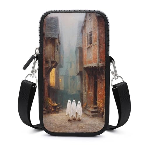 Three Cute Little Ghosts in Old Town Street Crossbody Mobile Phone Bag Smartphone Bag With Adjustable Strap