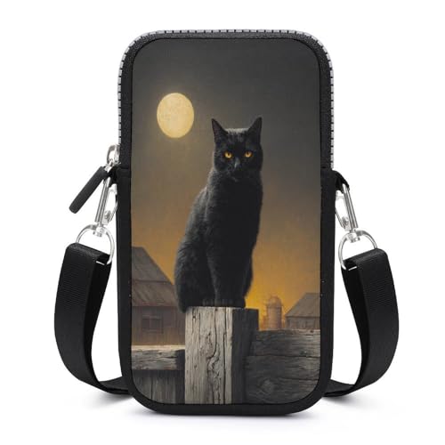 Jubonexis Black Cat on Old Wooden Fence Moon Crossbody Mobile Phone Bag Smartphone Bag With Adjustable Strap