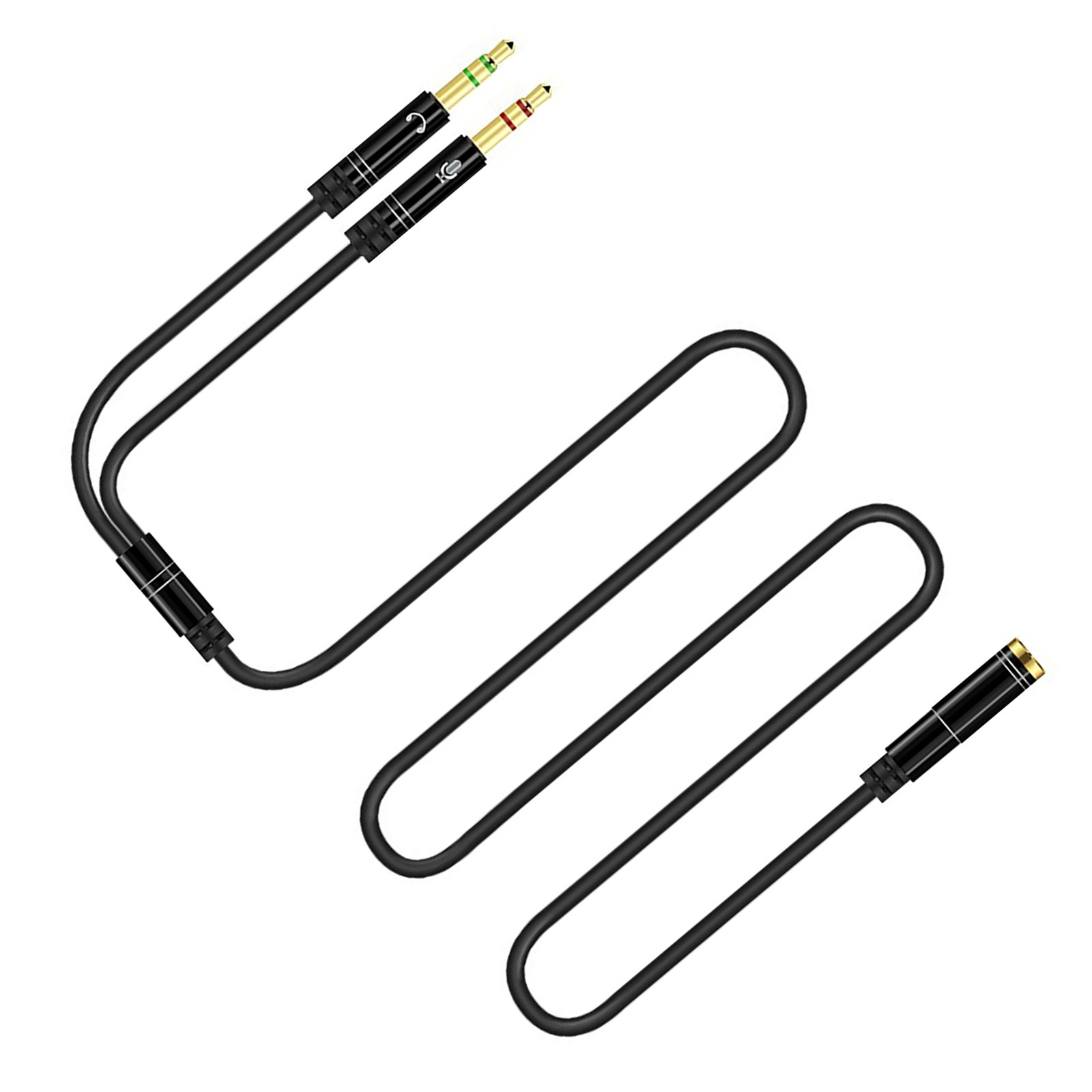 1 To 2 3.5mm Mobile Phone Headset Microphone Audio Extension Cable(Black)