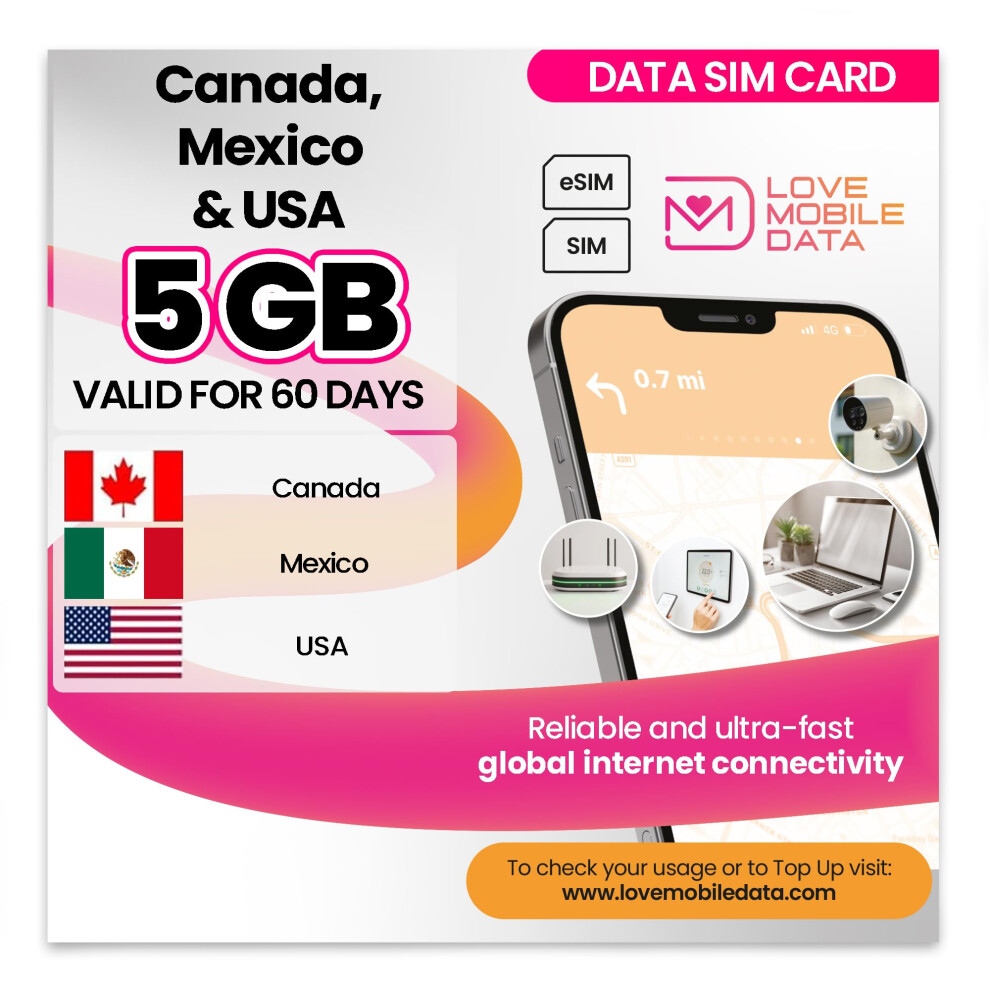 Love Mobile Data Only Sim Card - International Multi-Network 4G/5G Prepaid Pay As You Go Data Sim for Mobile Phones, WiFi Routers, & More, Mexico, Ca