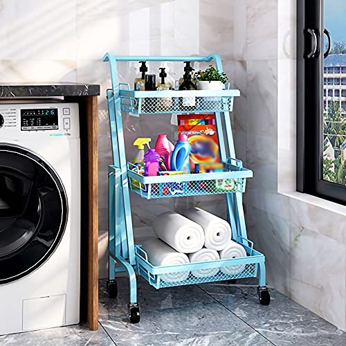 HXFENA Foldable Mobile Storage Shelving Unit, 3 Tier Stretchable Foldable Storage Shelving Cart, for Kitchen Balcony Bathroom Barber Shop/Blue / 94.5x44x30cm