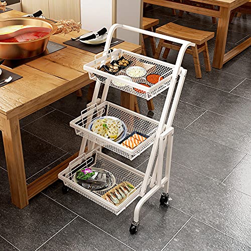 Foldable Mobile Storage Shelving Unit, 3 Tier Stretchable Foldable Storage Shelving Cart, for Kitchen Balcony Bathroom Barber Shop/White / 94.5x44x30cm