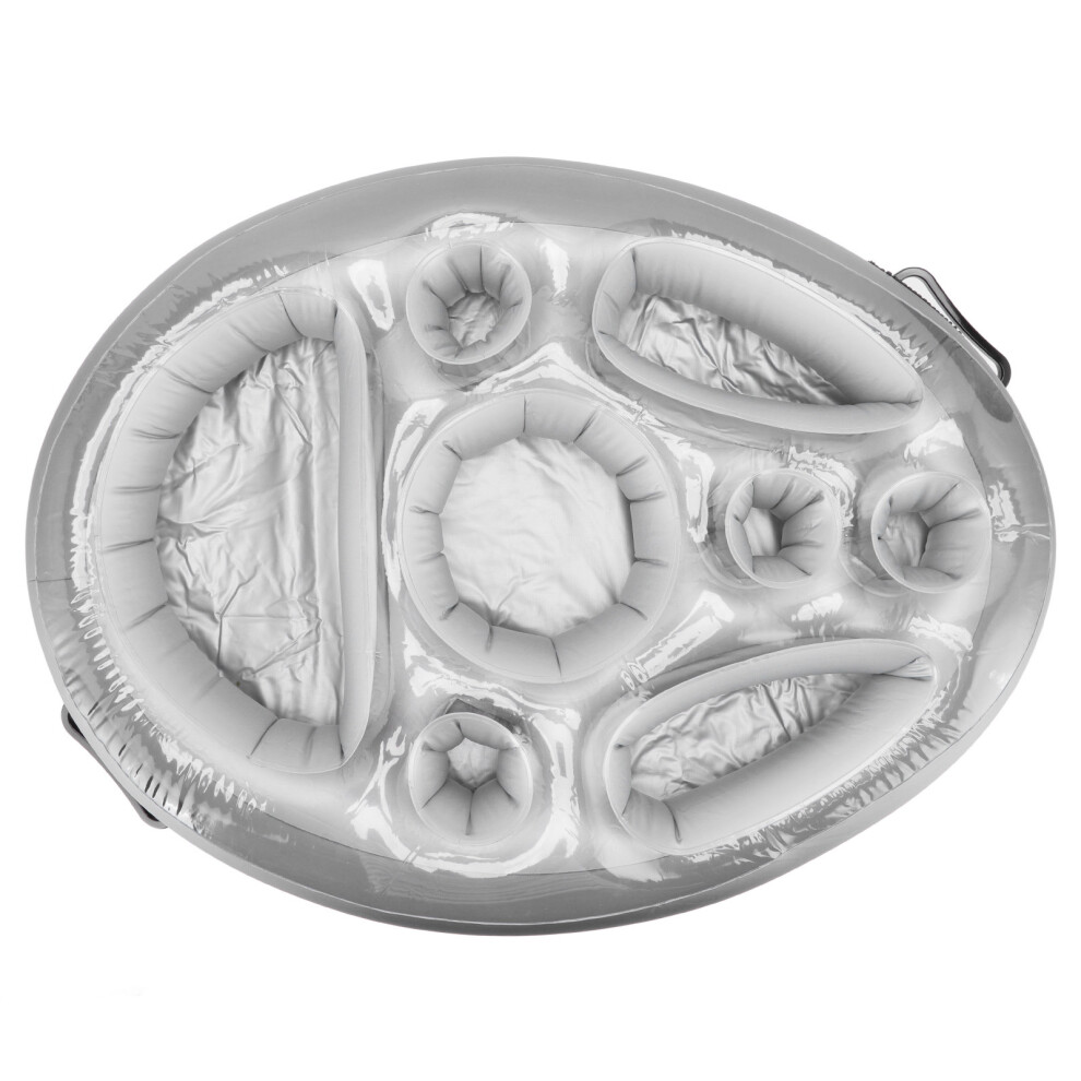 Inflatable Drink Holder PVC Floating Pool Tray Fruit Wine Mobile Phone Water Inflatable Ice Bed for Swimming Pool Party Silver