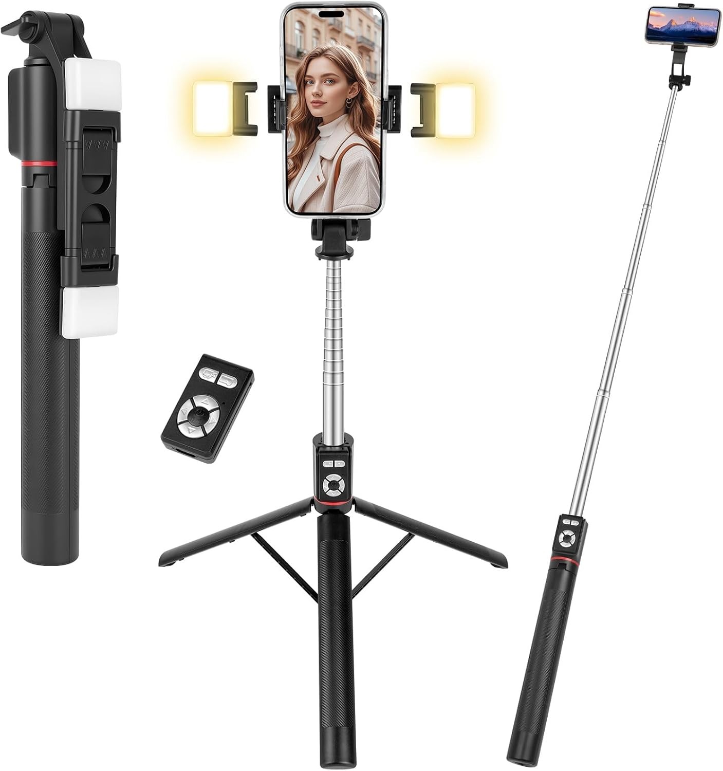 Mobile Phone Tripods, 67''/170cm Extendable Selfie Stick with 2 Fill Lights, 3