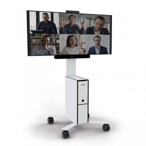Durable COWORKSATION Smart Mobile TV Stand on Wheels - 19 - 65in White