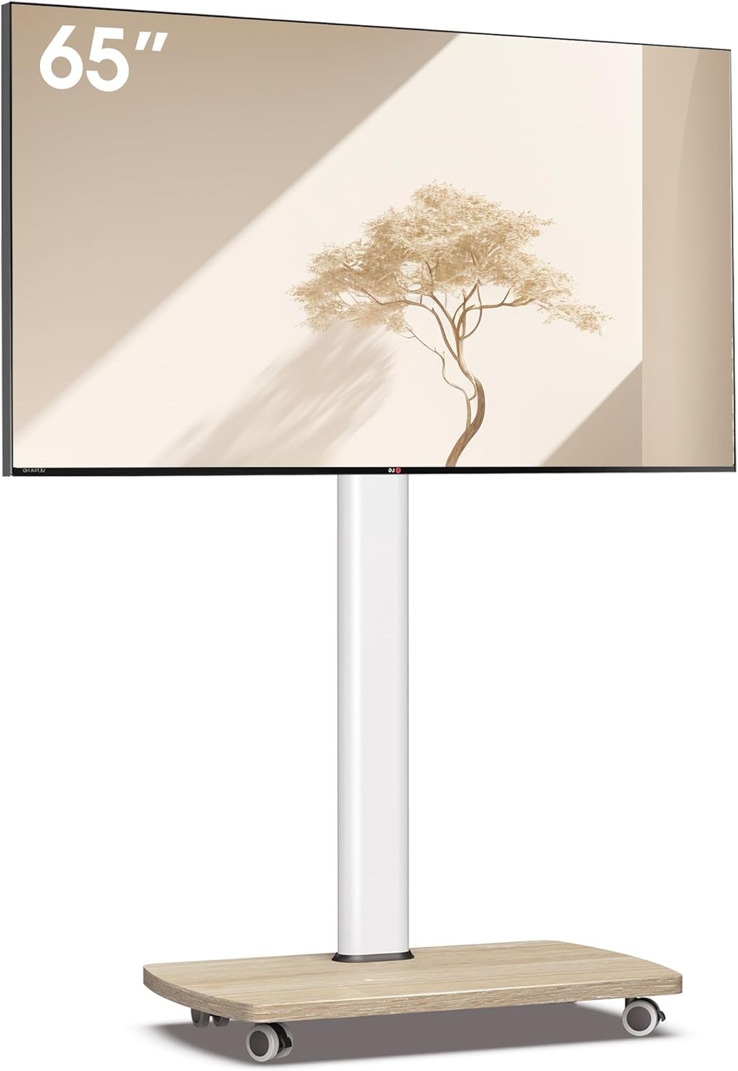 Mobile TV Stand on Wheels with Wooden Base for 32-65 inch TVs, TV Floor Stand H
