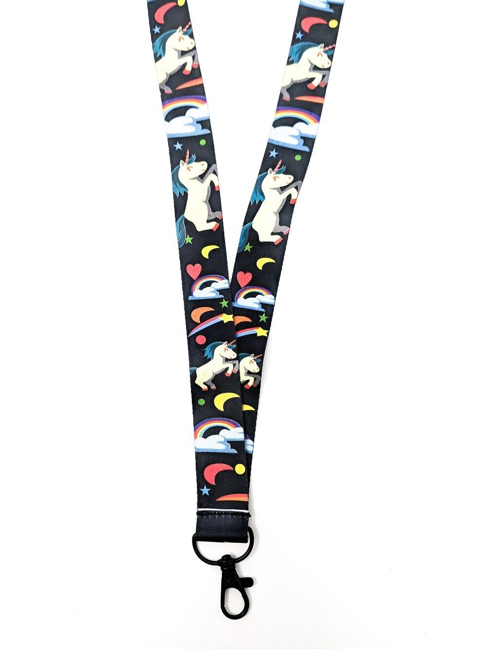 BLACK Unicorn Lanyard ID Cards Mobiles Keys Magical Unicorns Neck Strap UK