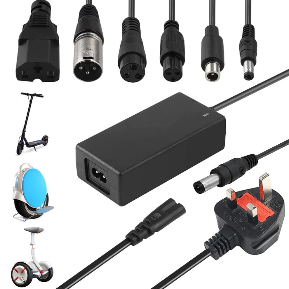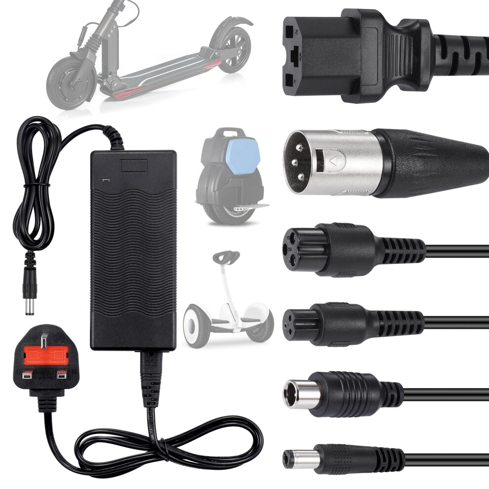 Electric Scooter Charger, Hoverboard Charger UK 3 Pin, Mobility Scooter Charger, Electric Bike Charger with 6 Connections, for Xiaomi Ninebot Electric